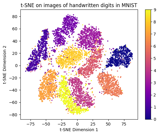Note that t-SNE is significantly more computationally intensive than PCA, especially for large datasets. Additionally, t-SNE is sensitive to hyperparameters such as perplexity and learning rate, which can affect the quality of the resulting visualization. Therefore, it is important to experiment with different hyperparameter settings to achieve the best results.