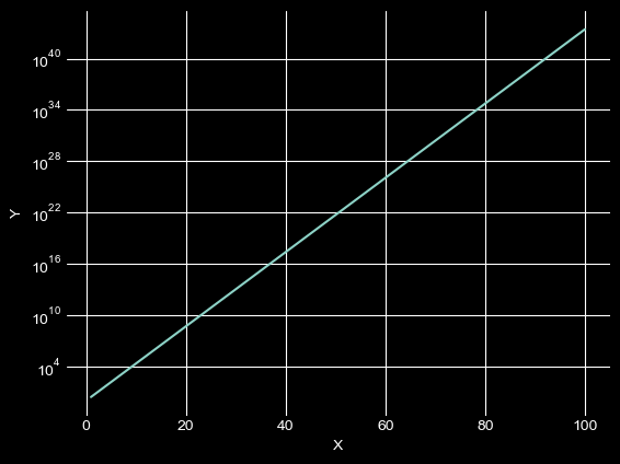 Example code cell below. Note how the values on the y-axis are still evenly spaced but increase exponentially.