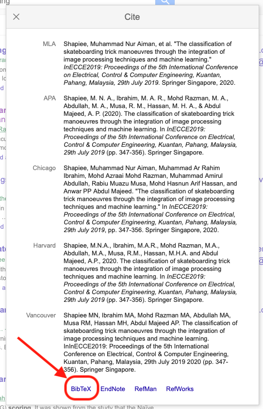 Step 4. From the bottom of the pop-up window, select BibTeX